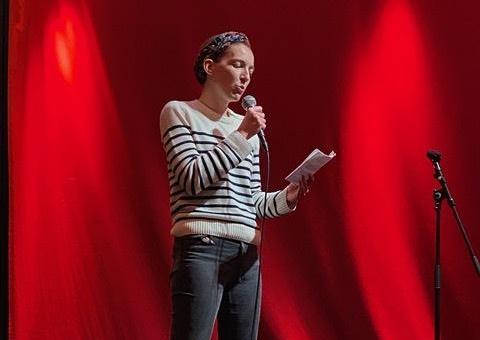 Sous son pseudo de slameuse, Amandine Berger écume scènes ouvertes et tournoi de slam en Suisse romande et France depuis 2021. Avec des thématiques engagées, elle affirme que l’intime est politique, en scandant des textes aussi personnels qu’émotionnels. Avec ou sans rime, ses punchlines percutent et laissent parfois K.O., n’hésitant pas à monter au corps à corps, pour toucher au coeur sans laisser de bleus à l’âme.